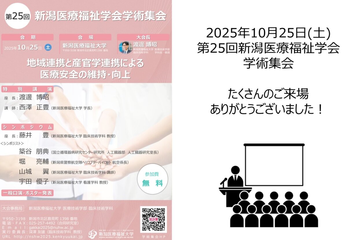 10月25日(土)に本学にて第25回新潟医療福祉学会学術集会が行われ、臨床技術学科教員が実行委員を担当しました。